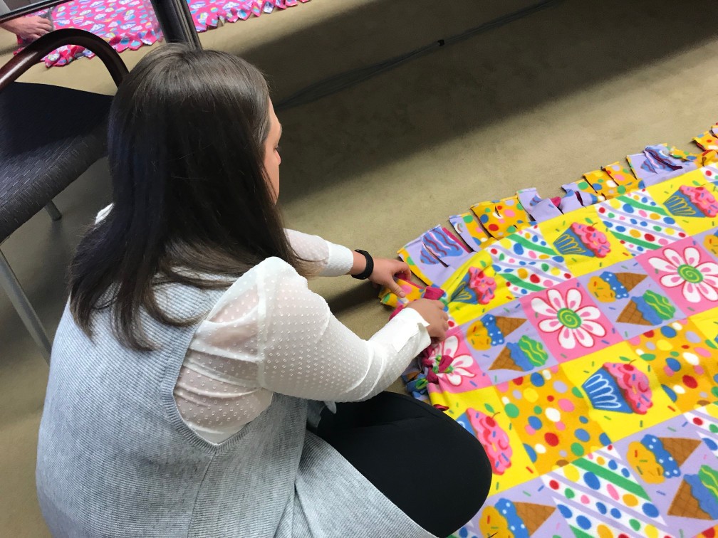 “We bring all of the materials, the blankets, the scissors, everything,” said Fleece & Thank You’s Alyssa Dorchak.
